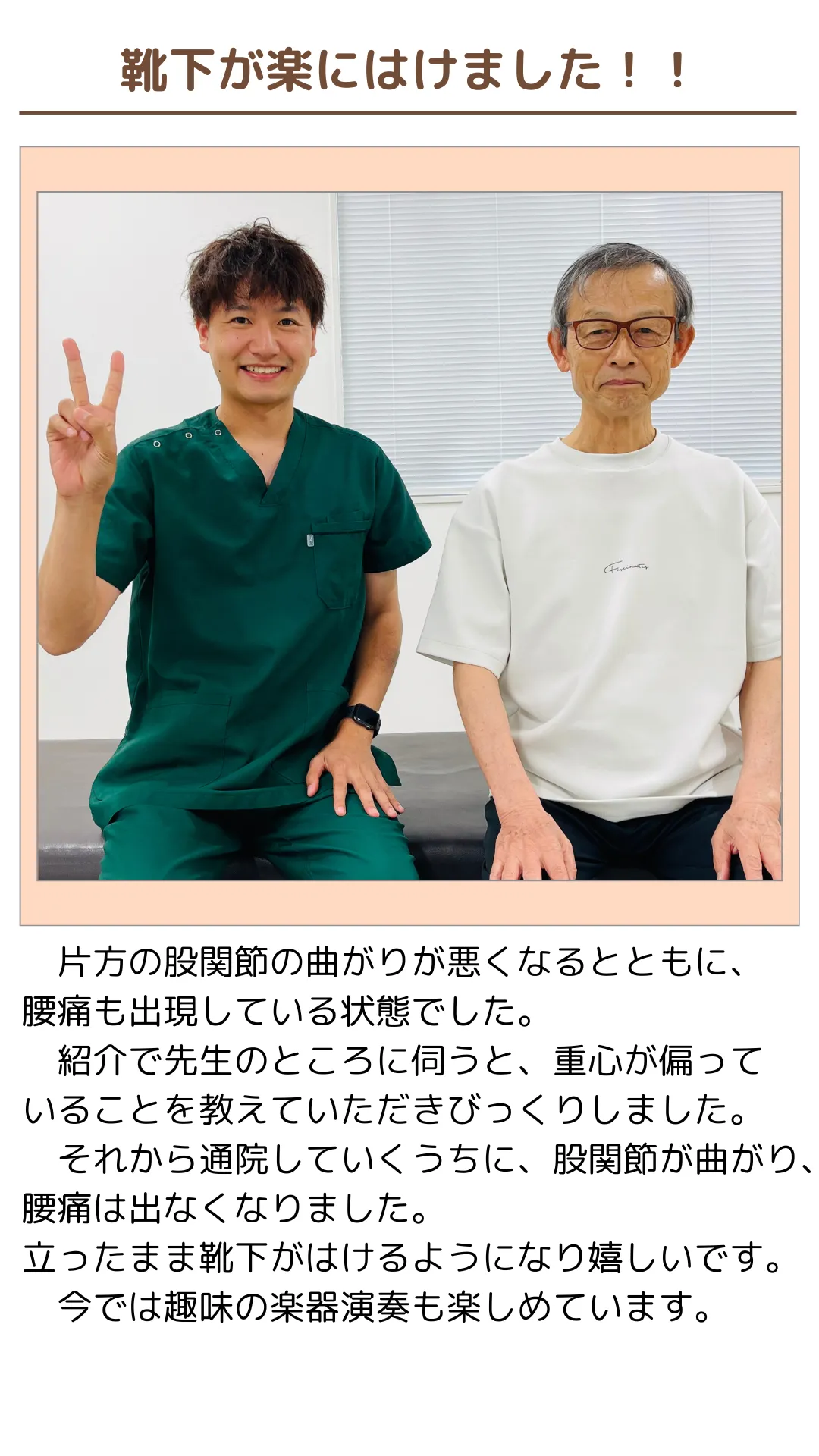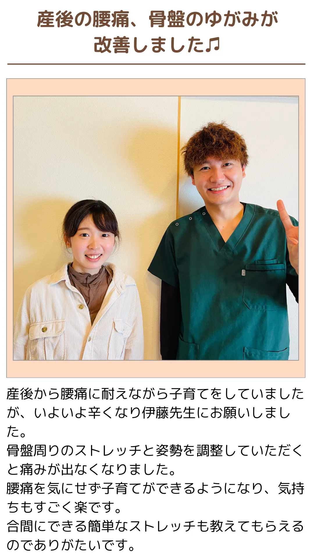 毎日電気やマッサージに通われ、また次の日には元に戻ってしまう…。そういった方がとても多く、その場しのぎの対処法では辛い生活から抜け出せないだけでなく、楽しい生活を送る時間までも削ってしまってることを思うととても胸が苦しかったです。